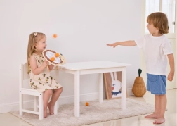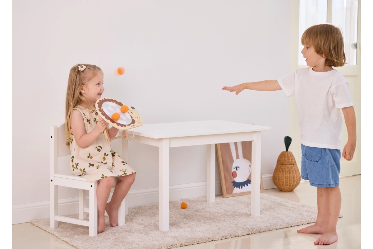 Αυτό το ξύλινο παιχνίδι έχει σχεδιαστεί για παιδιά από 3 ετών και προσφέρει εξαιρετική διασκέδαση μέσω στοχευμένης ρίψης μπαλών στον στόχο. Έτσι τα παιδιά μπορούν να βελτιώσουν τις δεξιότητες στόχευσής τους. Επιπλέον, το παιχνίδι είναι εύκολα συναρμολογούμενο και αποσυναρμολογούμενο, διευκολύνοντας τη μεταφορά και τη συντήρησή του.
