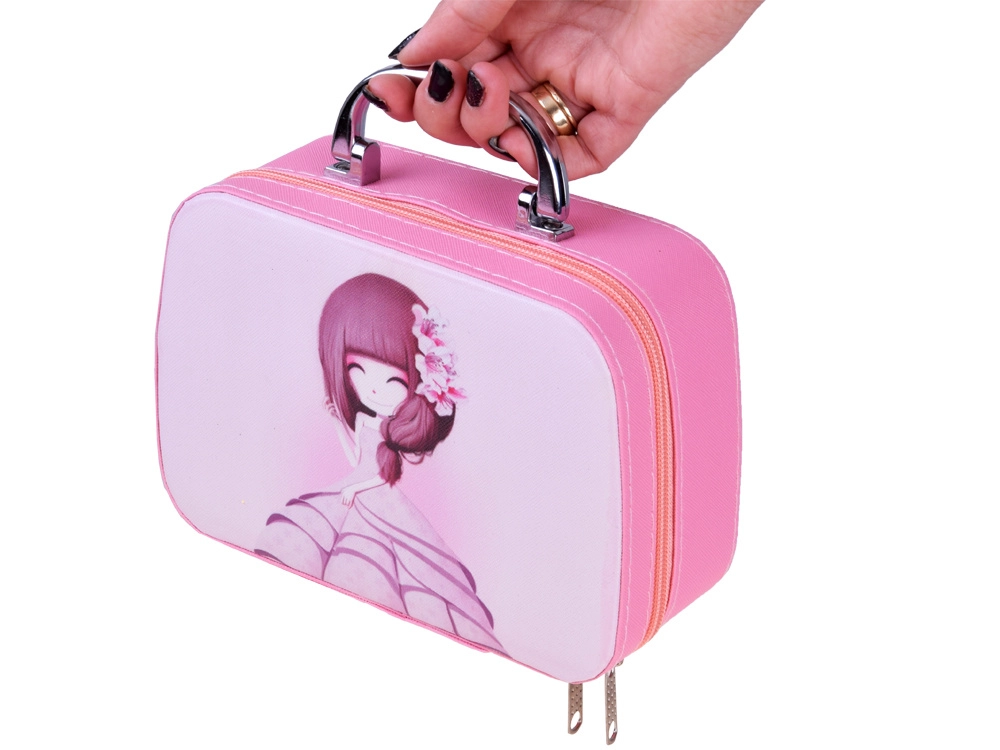 Κλειστό βαλιτσάκι με ενσωματωμένο καθρεφτάκι και θήκες για καλλυντικά, εύκολο στη μεταφορά χάρη στην πρακτική χειρολαβή. Ο κομψός και λειτουργικός σχεδιασμός εξασφαλίζει άνεση στη χρήση.