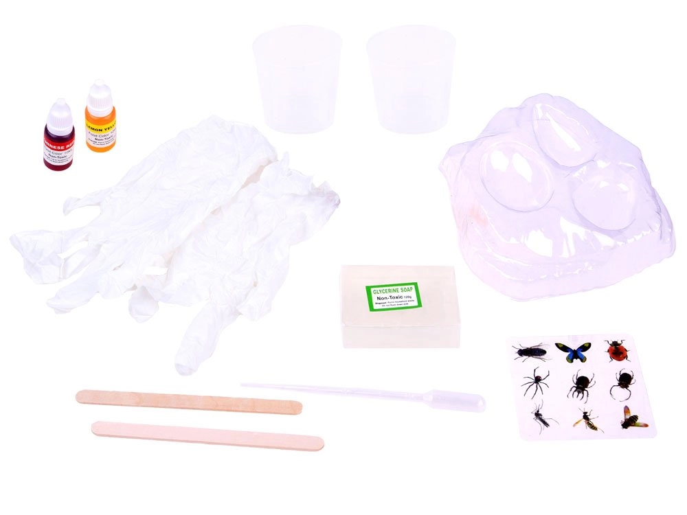 Περιλαμβάνει όλο τον εξοπλισμό για την κατασκευή κεχριμπαριού, όπως βάσεις σαπουνιού, χρώματα και καλούπια.