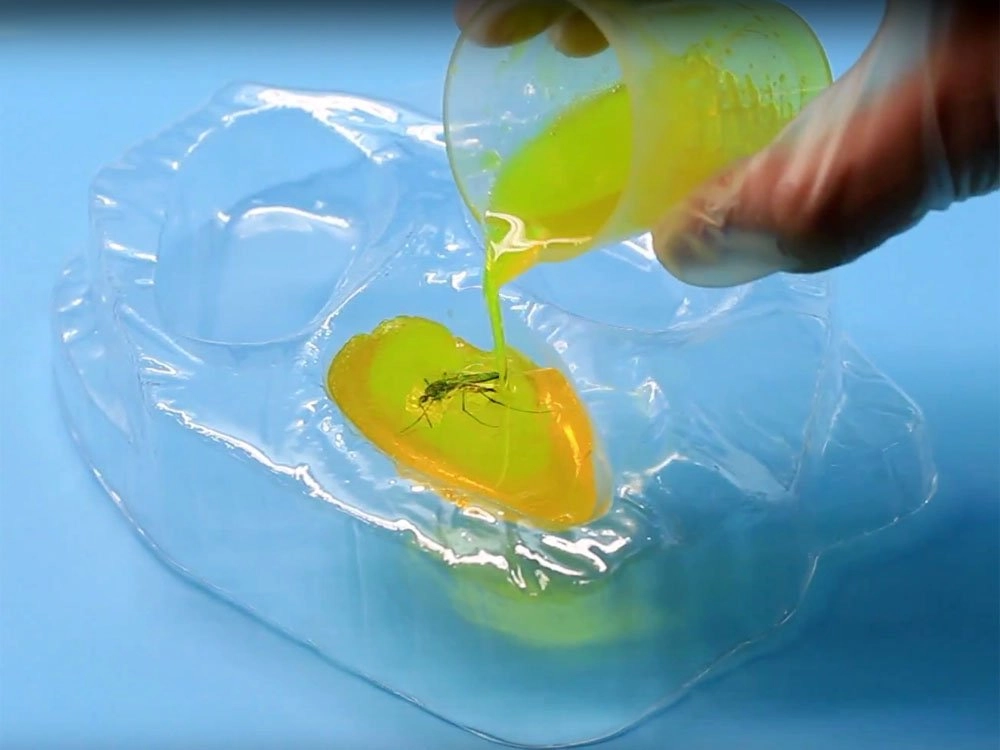 Δείξτε το ολοκληρωμένο σας έργο, το δικό σας κεχριμπάρι με εγκλωβισμένα έντομα και διακοσμητικά μοτίβα.