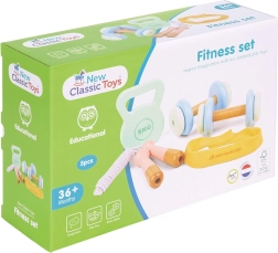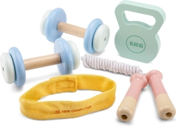Γνωρίστε τον κόσμο της άσκησης με το χαρούμενο ξύλινο σετ γυμναστικής για παιδιά από 3 ετών! Αυτό το σετ περιλαμβάνει όλα όσα χρειάζονται για υγιές παιχνίδι και δημιουργία συνηθειών: βαράκια, kettlebell, σχοινάκι και κορδέλα κεφαλιού.