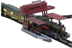 Λεπτομερής κατασκευή της ατμομηχανής και των βαγονιών, φωτιστικό εφέ και κλασική εμφάνιση για αυθεντική εμπειρία διαδρομής.