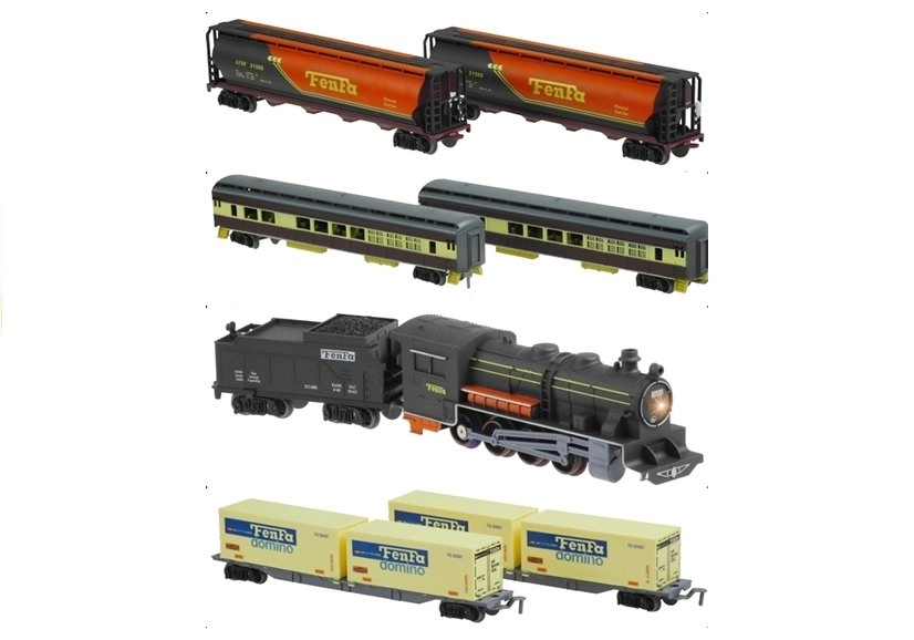 Ανακαλύψτε τη μεγάλη σιδηροδρομική πίστα FENFA, που προσφέρει ώρες οικογενειακής διασκέδασης. Το σετ περιλαμβάνει ατμομηχανή, 6 βαγόνια, ράγες μήκους περίπου 10 m και δεντράκια για διακόσμηση. Χάρη στην ρεαλιστική κατασκευή και τα φωτιστικά εφέ της ατμομηχανής, τα παιδιά αναπτύσσουν τη φαντασία, τη λεπτή κινητικότητα και τον συντονισμό τους. Οι ράγες μπορούν να συναρμολογηθούν σε διάφορους συνδυασμούς για συνεχώς νέες διαδρομές.