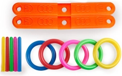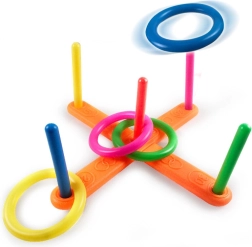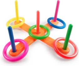 Διασκεδαστικό και πολύχρωμο παιχνίδι ρίψης δακτυλιδιών στον στόχο για παιδιά και ενήλικες, στο σπίτι ή σε εξωτερικό χώρο. Αναπτύσσει την συντονισμένη κίνηση ματιού–χεριού, τη λεπτή κινητικότητα και τη συγκέντρωση. Ασφαλές πλαστικό που πληροί τα πρότυπα CE και EN71. Εύκολη συναρμολόγηση, ελαφριά και ανθεκτική κατασκευή, κατάλληλο από 3 ετών.