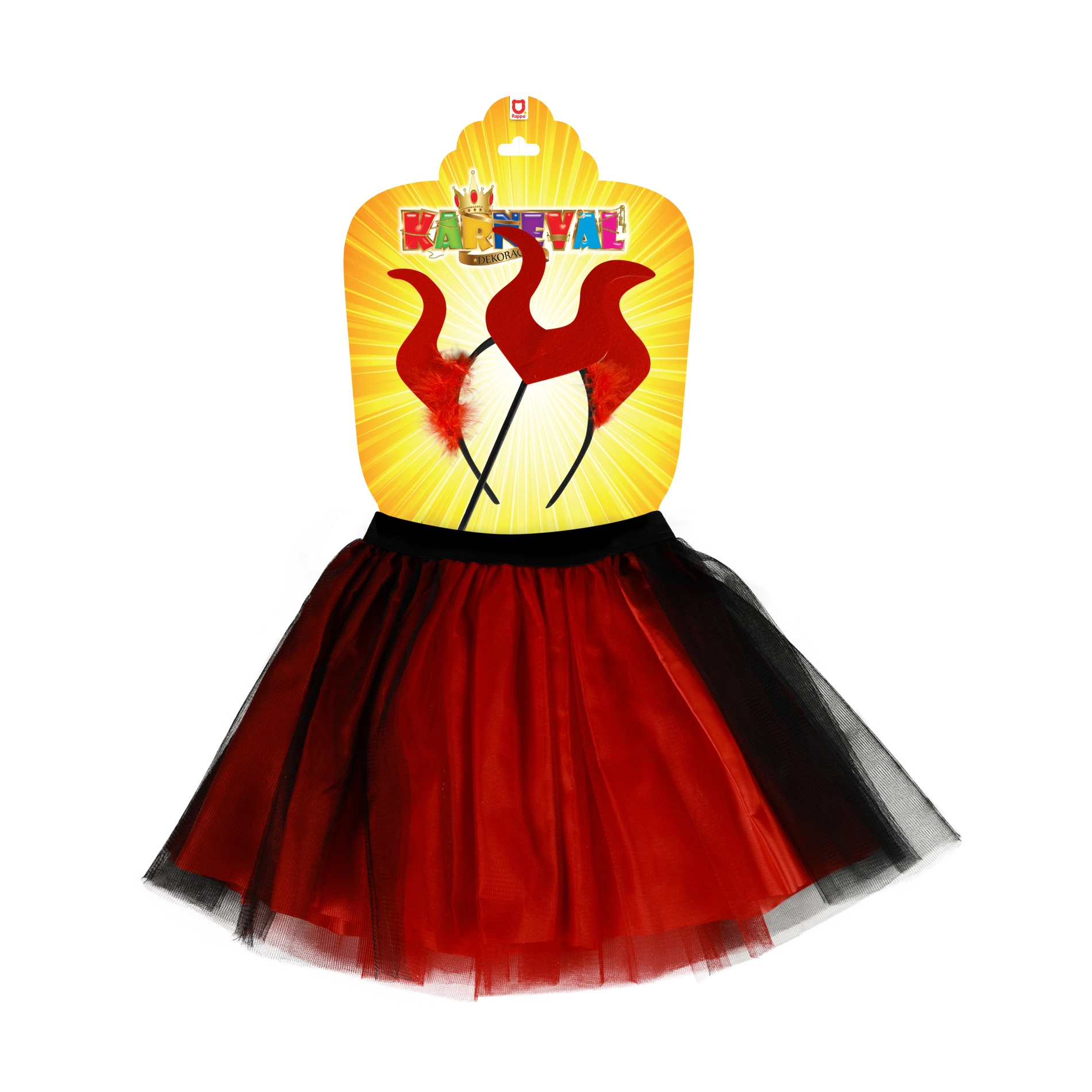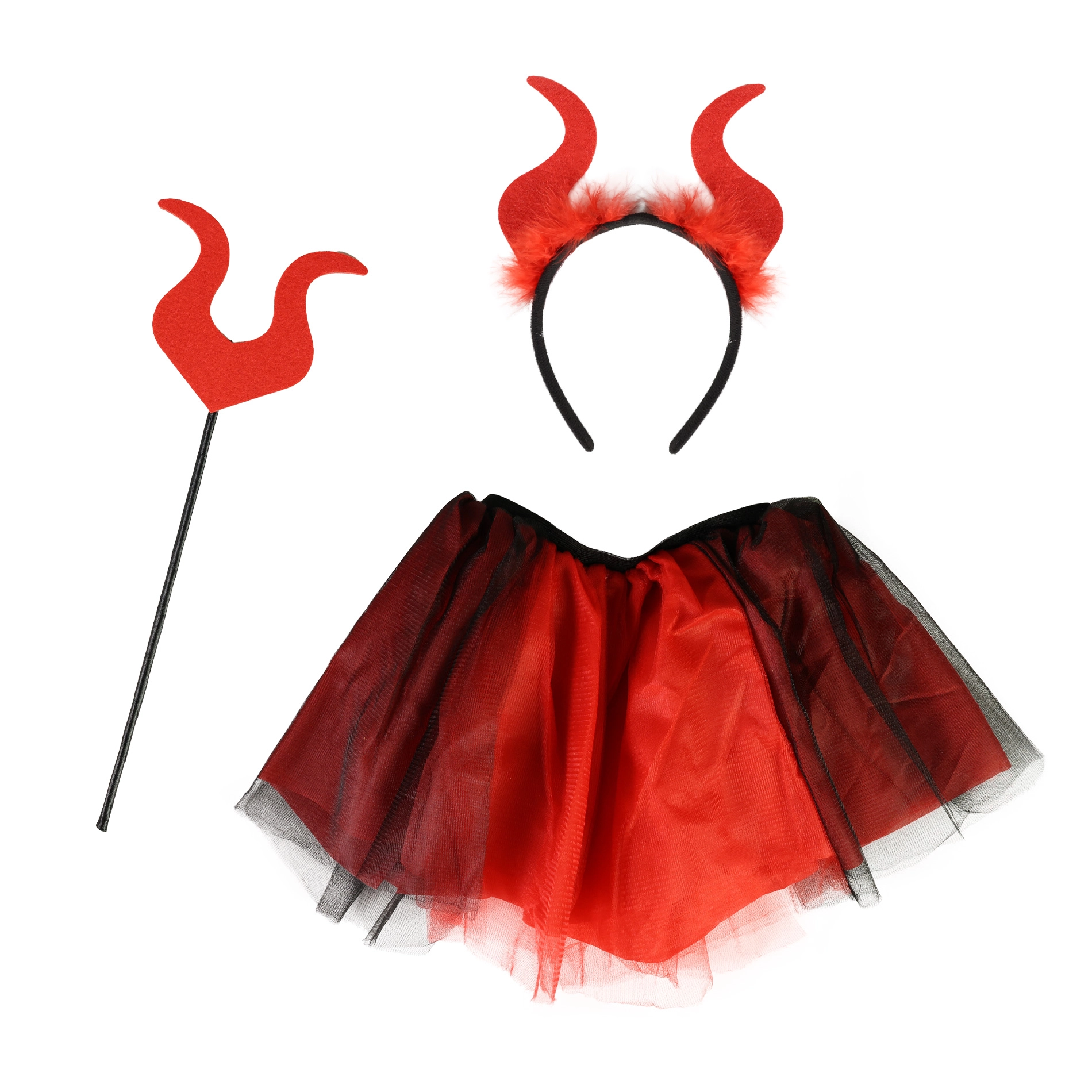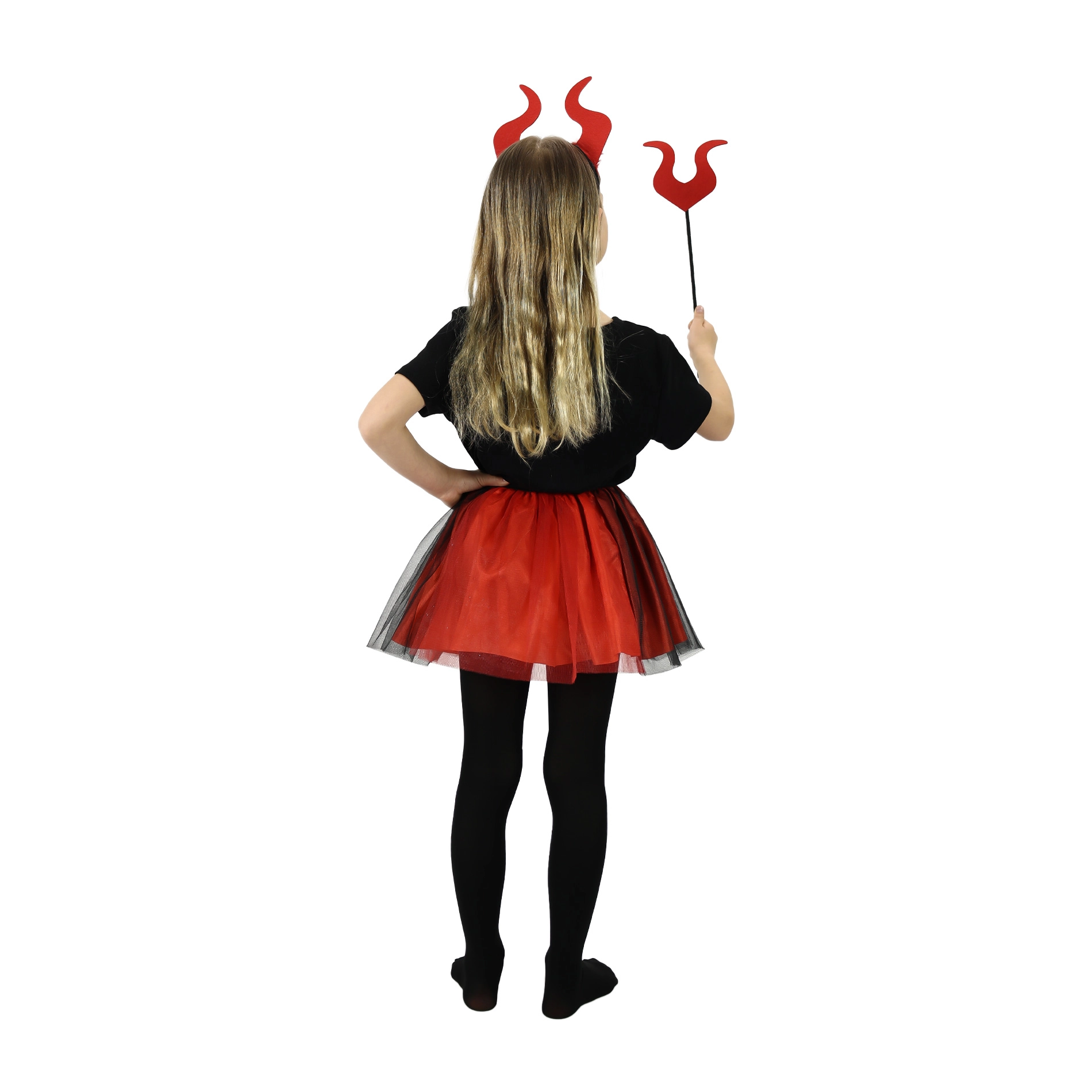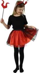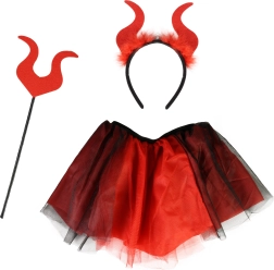 Χαριτωμένη στολή διαβολάκι ιδανική για κοριτσάκια ηλικίας 3-7 ετών. Η στολή περιλαμβάνει κόκκινη-μαύρη φούστα tutu, στέκα με κέρατα και ραβδάκι, που χαρίζουν στη μικρή σας διαβολίτσα παιχνιδιάρικη και διασκεδαστική εμφάνιση.