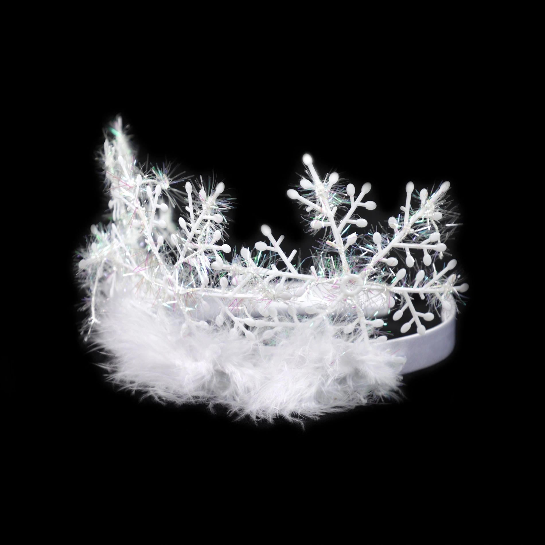 Αυτό το γοητευτικό στέμμα είναι ο τέλειος τρόπος για να ολοκληρώσετε τη στολή μιας μικρής πριγκίπισσας ή της βασίλισσας του χειμώνα. Με τον πρωτότυπο σχεδιασμό του, τις περίτεχνες νιφάδες χιονιού και το απαλό φτερό, το στέμμα εντυπωσιάζει με την πρώτη ματιά.