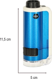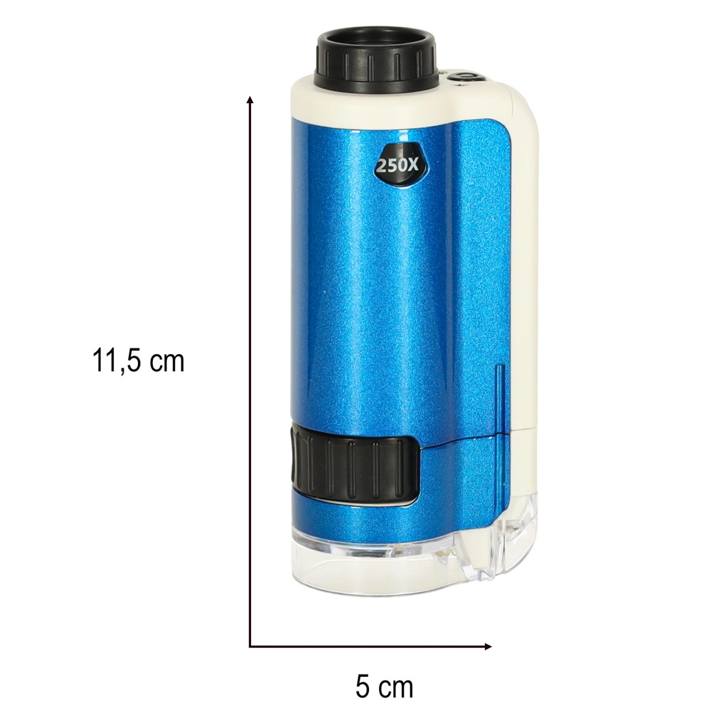 Ανακαλύψτε τον συναρπαστικό μικροσκοπικό κόσμο με το τσέπικο μικροσκόπιο για παιδιά. Αυτή η συσκευή επιτρέπει λεπτομερή διερεύνηση διαφόρων αντικειμένων, όπως φύλλα, υφαντικές ίνες ή κρύσταλλοι αλατιού, χάρη στη διπλή μεγέθυνση (100x, 250x). Το μικροσκόπιο είναι εξοπλισμένο με LED που εξασφαλίζει βέλτιστο φωτισμό.