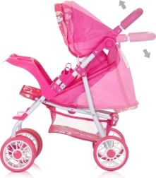 Η ζώνη ασφαλείας κρατά την κούκλα στη θέση της, η ρυθμιζόμενη κουκούλα προστατεύει από τον ήλιο και το καλαθάκι κάτω από το κάθισμα χωρά όλα τα απαραίτητα.