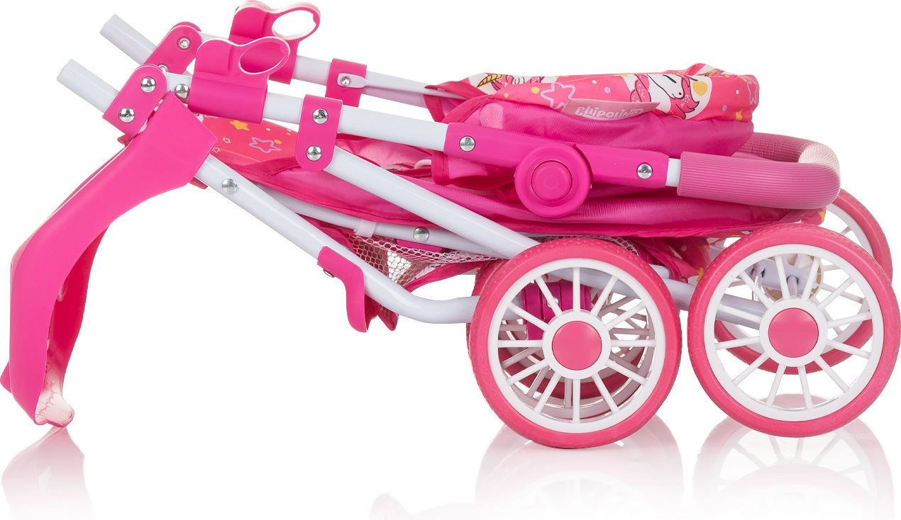 Ελαφρύ και σταθερό καροτσάκι για κούκλες με μαγευτικό μοτίβο DOLLY UNICORNS που θα ενθουσιάσει τις μικρές φροντίστριες. Προσφέρει ρυθμιζόμενη λαβή, ρυθμιζόμενη πλάτη, ρυθμιζόμενη κουκούλα, καλάθι αποθήκευσης και πτυσσόμενη κατασκευή για εύκολη μεταφορά.