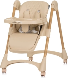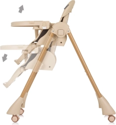 Για καθαρό και άνετο φαγητό, διατίθεται διπλός δίσκος – το επάνω μέρος αφαιρείται και πλένεται οποιαδήποτε στιγμή, ενώ ο κάτω δίσκος με προστατευτική Τ-μπάρα κρατά το παιδί σταθερά στη θέση του. Ο δίσκος μετακινείται εμπρός και πίσω σε 3 θέσεις. Τέσσερα ροδάκια επιτρέπουν την εύκολη μετακίνηση μέσα στο σπίτι και μετά το γεύμα το καρεκλάκι διπλώνει εύκολα σε συμπαγές σχήμα για εξοικονόμηση χώρου.