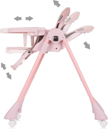 Πρακτικό και στυλάτο καρεκλάκι φαγητού για καθημερινή χρήση, για παιδιά έως 15 kg. Προσφέρει 8 επίπεδα ύψους, ρυθμιζόμενη πλάτη και υποπόδιο, διπλό αποσπώμενο δίσκο για εύκολο καθάρισμα και 4 ροδάκια για άνετη μετακίνηση. Για ασφάλεια διαθέτει ζώνες 5 σημείων με μαλακά μαξιλαράκια και σταθερή κατασκευή σύμφωνα με το EN 14988.