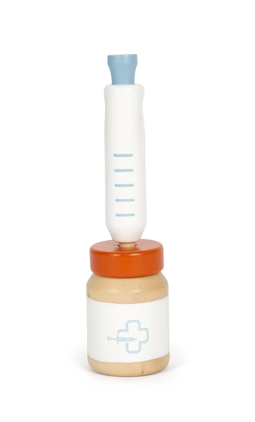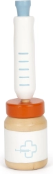 Ξύλινη σύριγγα με ελατηριωτό μηχανισμό, δοχείο για φάρμακα και άλλα εργαλεία που υποστηρίζουν αυθεντικό παιχνίδι φροντίδας κατοικιδίου.