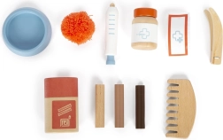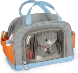 Η πρακτική τσάντα με διχτυωτό αερισμό και αποθηκευτικές τσέπες κρατά όλα τα αξεσουάρ τακτοποιημένα. Η ποιοτική κατασκευή από συνδυασμό ξύλου, πλαστικού και υφάσματος εξασφαλίζει μεγάλη αντοχή και ασφαλές παιχνίδι. Περιλαμβάνονται επίσης ελατηριωτή σύριγγα, τσιμπιδάκι, επίδεσμος και άλλα αξεσουάρ για ρεαλιστική φροντίδα.