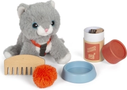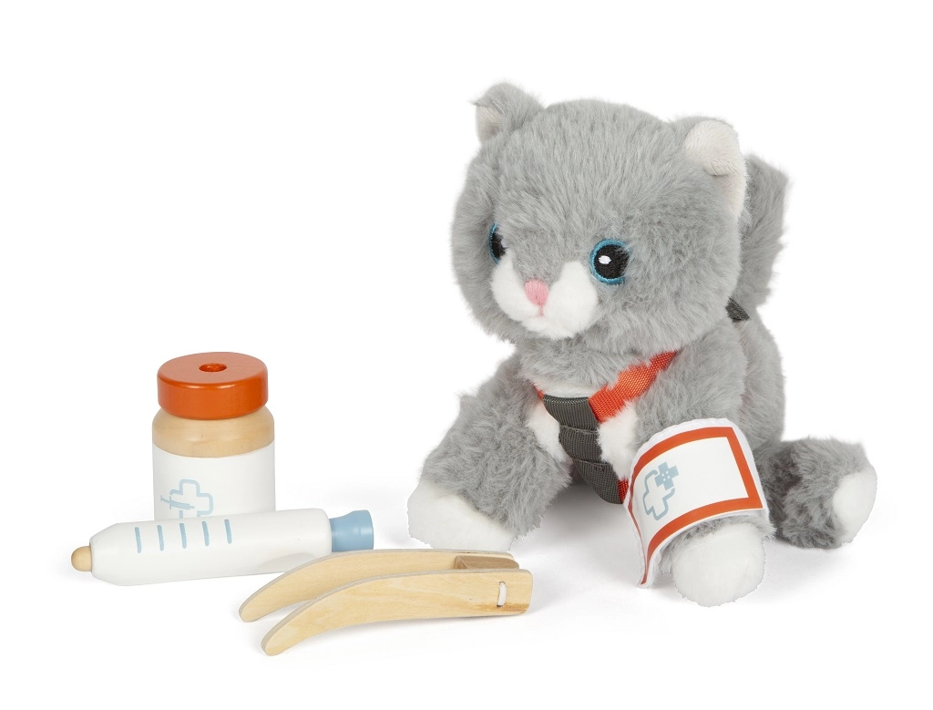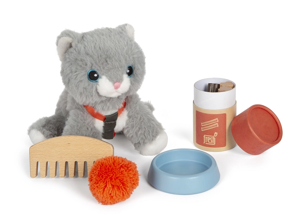 Αυτό το πλούσια εξοπλισμένο σετ προσφέρει ό,τι χρειάζονται τα παιδιά για να φροντίσουν τον λούτρινο, τριχωτό θησαυρό τους. Η γατούλα με σαμαράκι μπορεί να ταξιδεύει στην άνετη τσάντα μεταφοράς με στρωματάκι και, όποτε χρειάζεται, τα παιδιά έχουν στη διάθεσή τους εργαλεία για τάισμα, φροντίδα και αγκαλιές. Το παιχνίδι του μικρού κτηνιάτρου καλλιεργεί την ενσυναίσθηση και την υπευθυνότητα με διασκεδαστικό τρόπο.