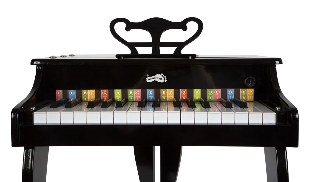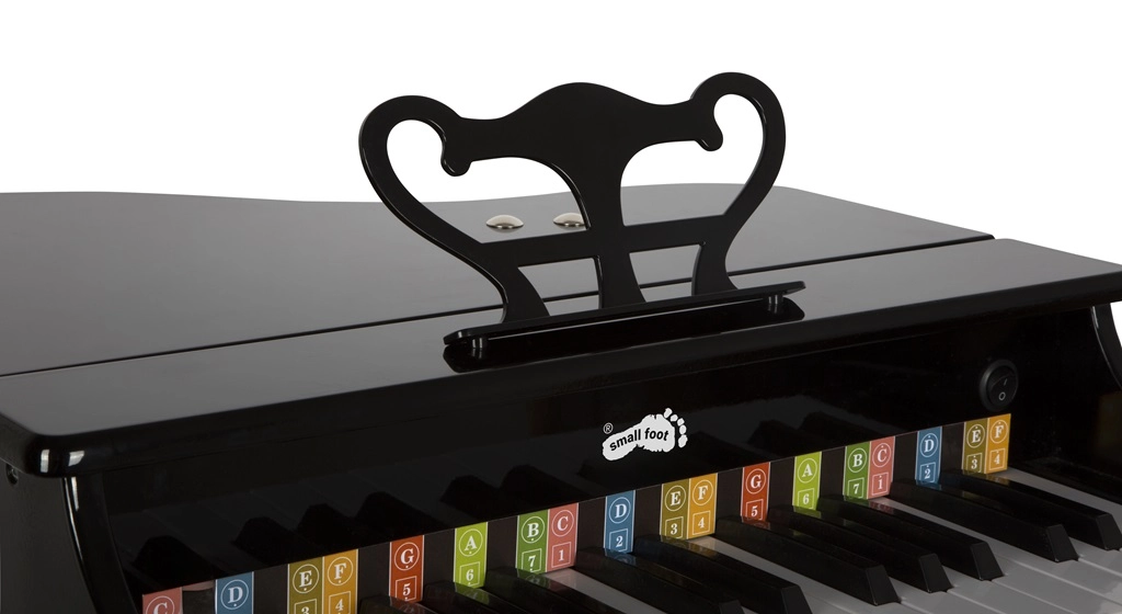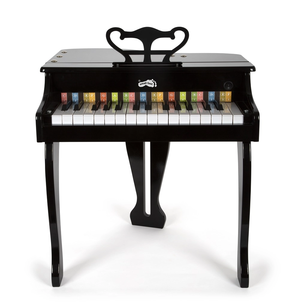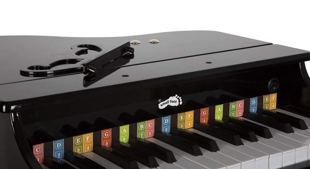 Κομψό παιδικό πιάνο-ουρά SMALL FOOT από ποιοτικό ξύλο που προσφέρει στα παιδιά χαρά της μουσικής. Διαθέτει πολυτελή σχεδίαση, εξαιρετική ποιότητα ήχου και ανοιγόμενο καπάκι όπως σε πραγματική ουρά. Περιλαμβάνει σκαμπό, αναλόγιο και τραγουδόφυλλο με χρωματικά σημειωμένες νότες και πλήκτρα για εύκολη εκμάθηση. Τροφοδοτείται με 4× AA μπαταρίες (δεν περιλαμβάνονται).