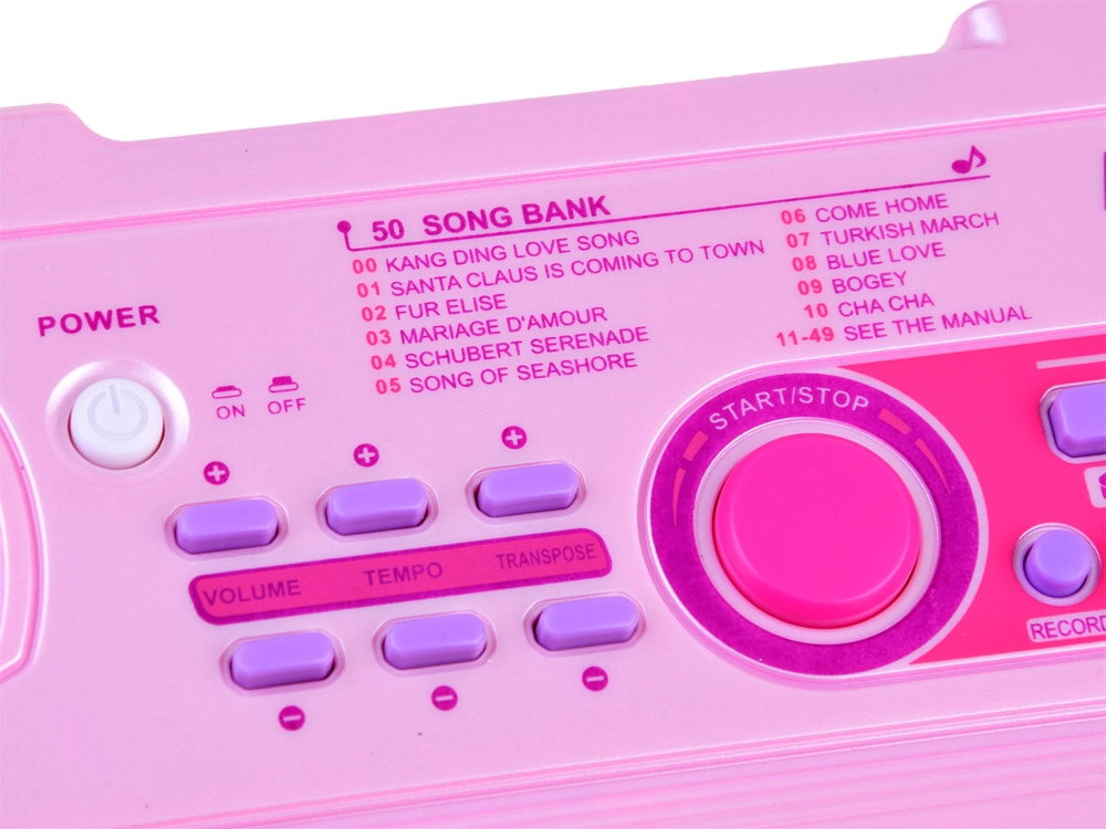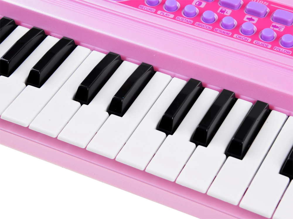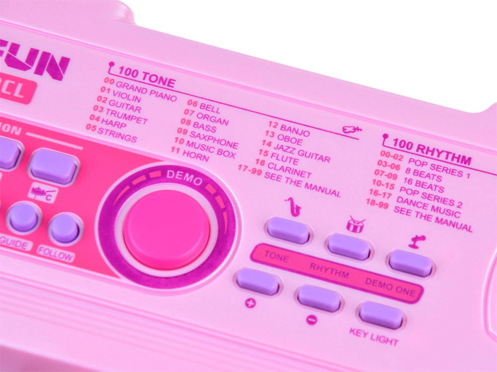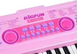 Ροζ παιδικό keyboard BIGFUN με φωτιζόμενα πλήκτρα προσφέρει διασκεδαστική εκμάθηση μουσικής για μικρούς μουσικούς. Διαθέτει 49 πλήκτρα, 100 ήχους, 100 ρυθμούς, 50 demo κομμάτια, ηχογράφηση και αναπαραγωγή, ρύθμιση tempo και έντασης. Περιλαμβάνονται μικρόφωνο, τροφοδοσία USB και είσοδοι για MIC και AUX.