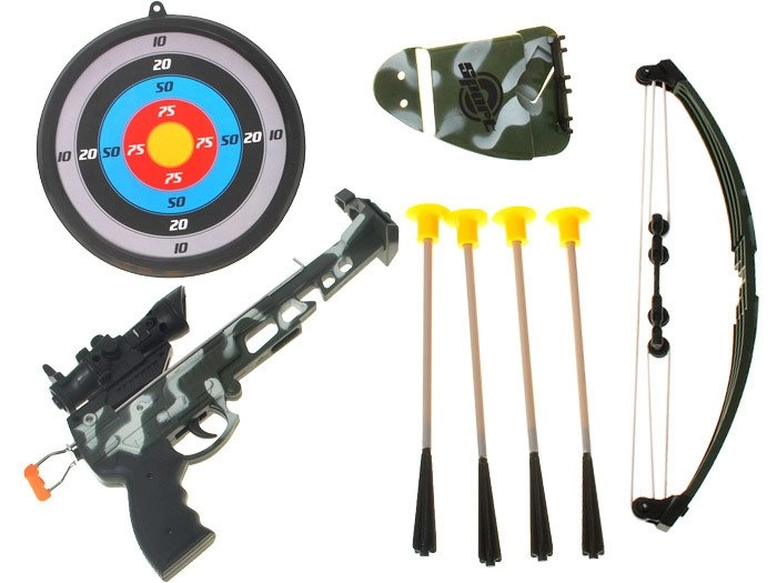 - Βαλλίστρα, στόχος, 4 βέλη με βεντούζες, θήκη για τα βέλη