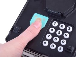 Εισαγάγετε τον τετραψήφιο κωδικό (προεπιλογή 0000) και επιβεβαιώστε τον αγγίζοντας τον σαρωτή δακτυλικού αποτυπώματος (προσομοίωση). Η πόρτα του χρηματοκιβωτίου ανοίγει αυτόματα μετά τη σωστή διαδικασία.