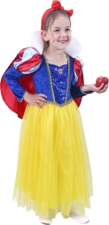 Το μπλε μπούστο με χρυσό διάκοσμο, η κίτρινη φούστα και οι εμβληματικές κόκκινες λεπτομέρειες δημιουργούν την αίσθηση της αληθινής Χιονάτης. Ιδανικό για αποκριάτικα πάρτι και παιχνίδι στο σπίτι.