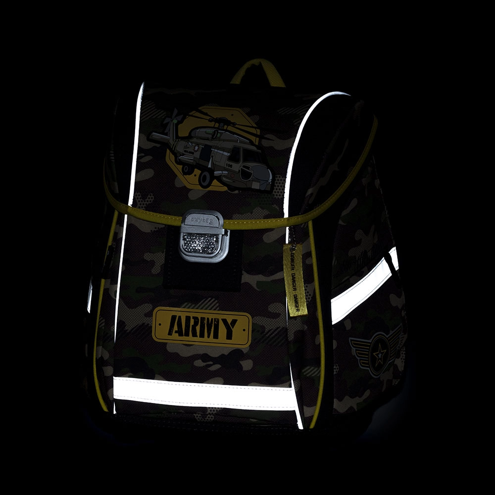 Η εργονομικά διαμορφωμένη πλάτη από αναπνέον υλικό, οι φαρδιές μαλακές τιράντες και οι ιμάντες σύσφιξης και θώρακα εξασφαλίζουν σταθερή εφαρμογή και ομοιόμορφη κατανομή του βάρους. Τα ανακλαστικά στοιχεία αυξάνουν την ορατότητα στο λυκόφως και στη βροχή, κάνοντας τη διαδρομή προς το σχολείο πιο ασφαλή.