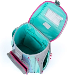 Ο εσωτερικός χώρος είναι αρκετά ευρύχωρος ώστε να χωρέσει όλα τα απαραίτητα για την πρώτη και τη δεύτερη τάξη. Διαθέτει επίσης ζώνη ασφαλείας και ανακλαστικά στοιχεία για καλύτερη ορατότητα στις διαδρομές προς και από το σχολείο.