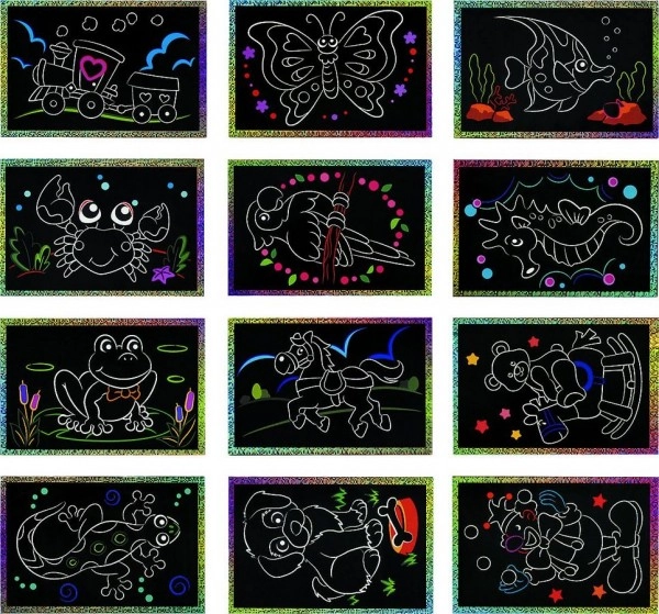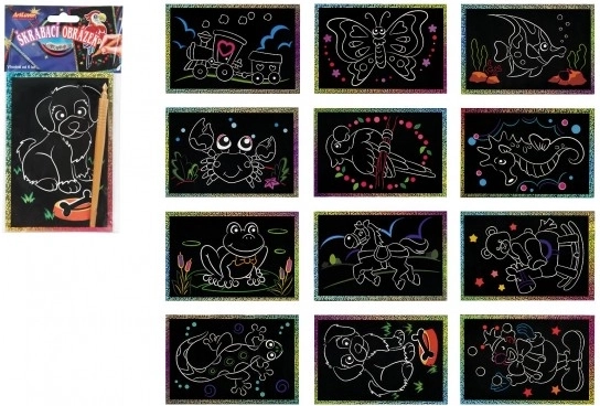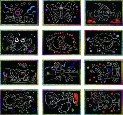 Αυτό το σετ ξυστών εικόνων είναι ιδανική επιλογή για την πρώτη δημιουργία. Η απλή αρχή της αφαίρεσης ολόκληρου του μοτίβου χωρίς περίπλοκες λεπτομέρειες γίνεται εύκολα κατανοητή από τα παιδιά και βλέπουν αμέσως το αποτέλεσμα: όμορφες λαμπερές και πολύχρωμες εικόνες που λαμπυρίζουν εντυπωσιακά.