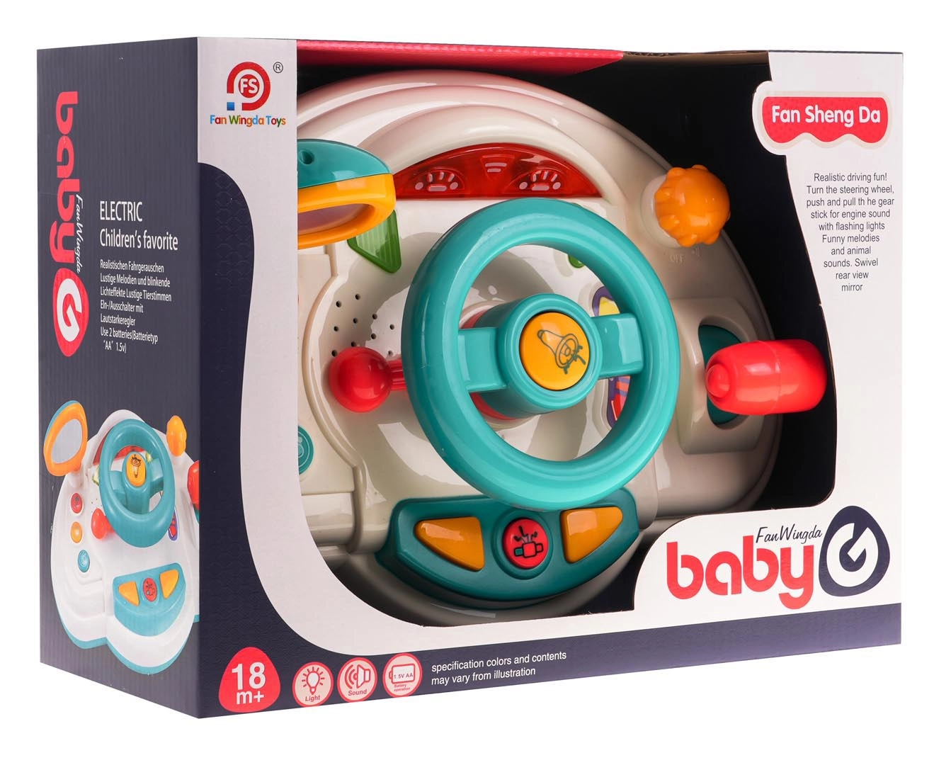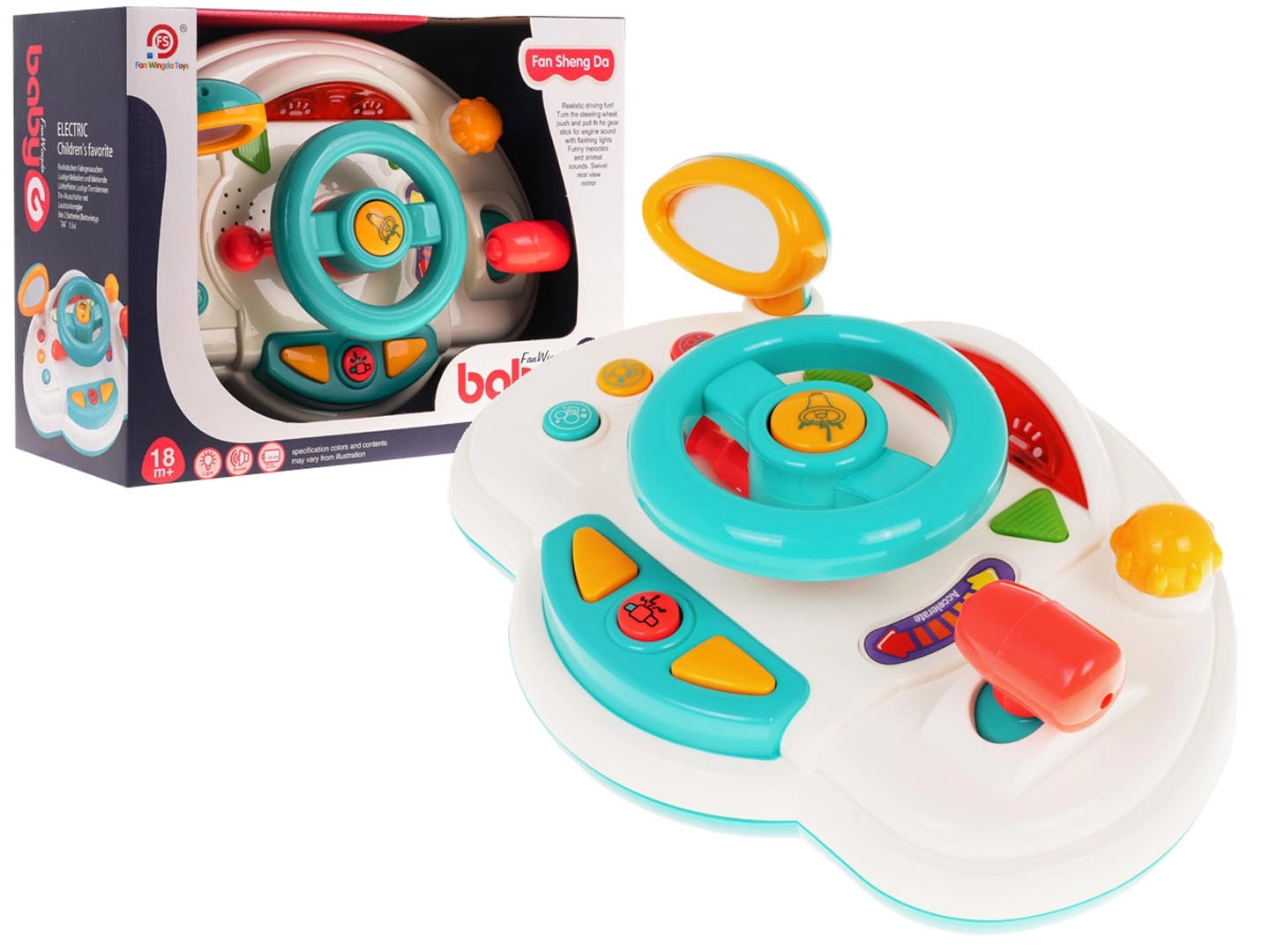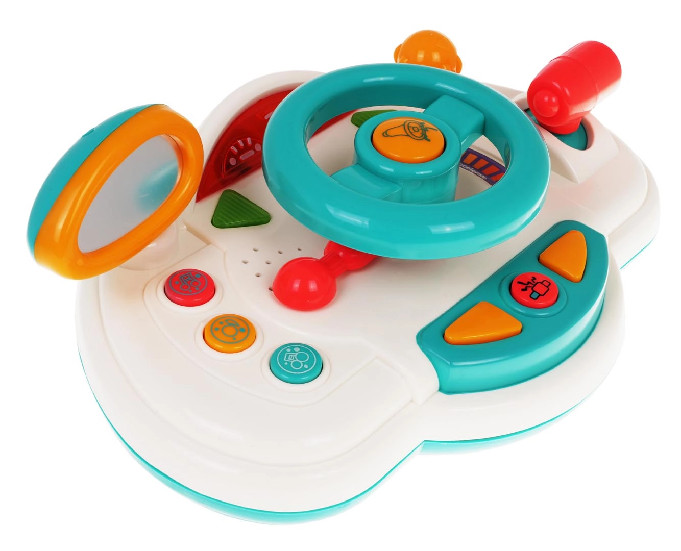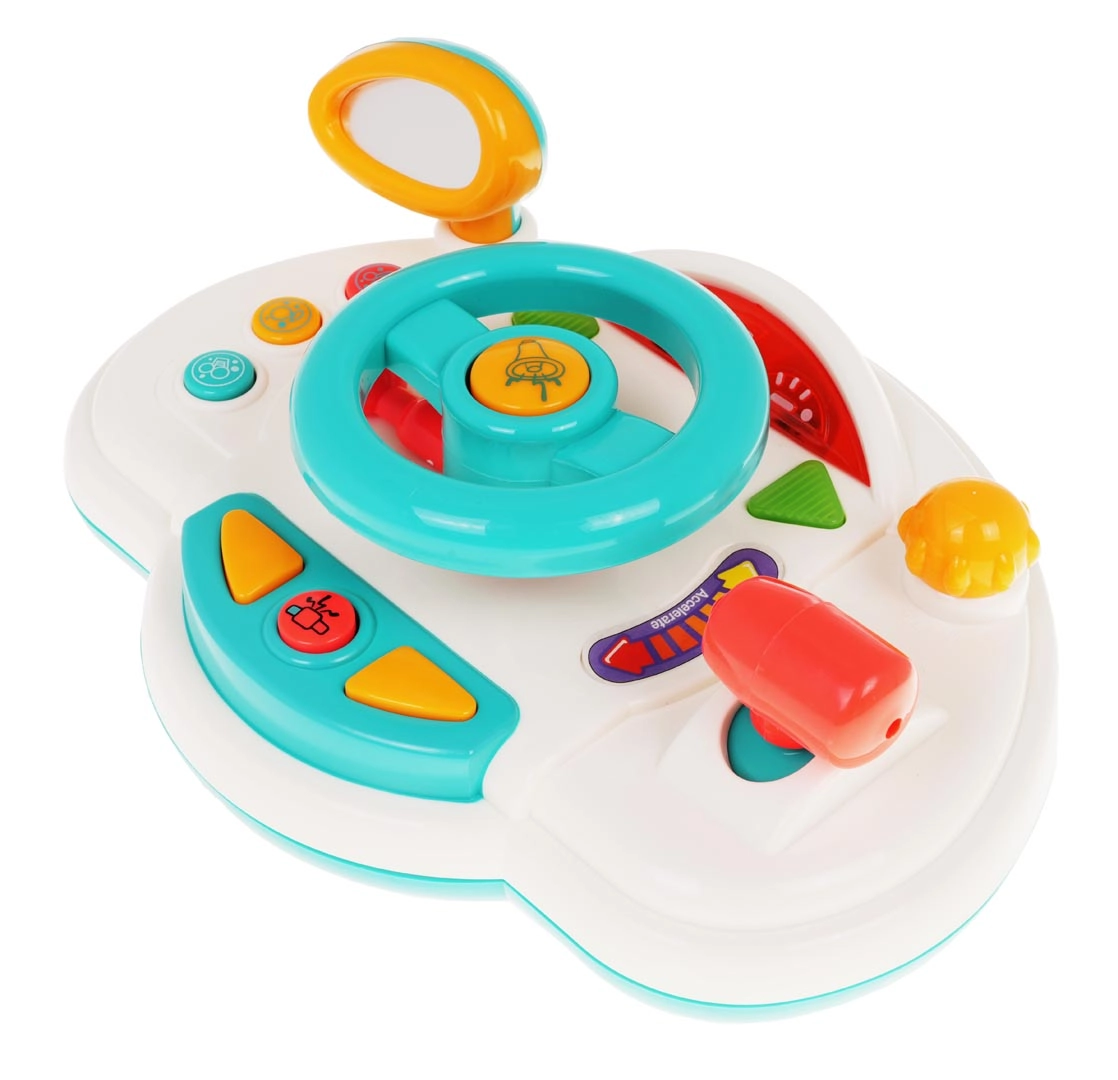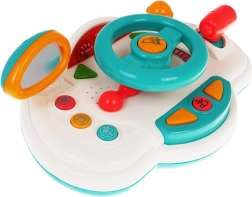 Διασκεδαστικός διαδραστικός προσομοιωτής οδήγησης για παιδιά από 18 μηνών που προσφέρει ρεαλιστική εμπειρία οδήγησης. Περιλαμβάνει φωτεινά εφέ, ήχους κινητήρα και κόρνας, αγγλικά φωνητικά μηνύματα (turn left/right) και κινούμενα στοιχεία όπως τιμόνι, καθρέφτη οπισθοπορείας και λεβιέ ταχυτήτων. Η πολύχρωμη εμφάνιση και ο απλός χειρισμός υποστηρίζουν την ανάπτυξη της κινητικότητας και της φαντασίας.