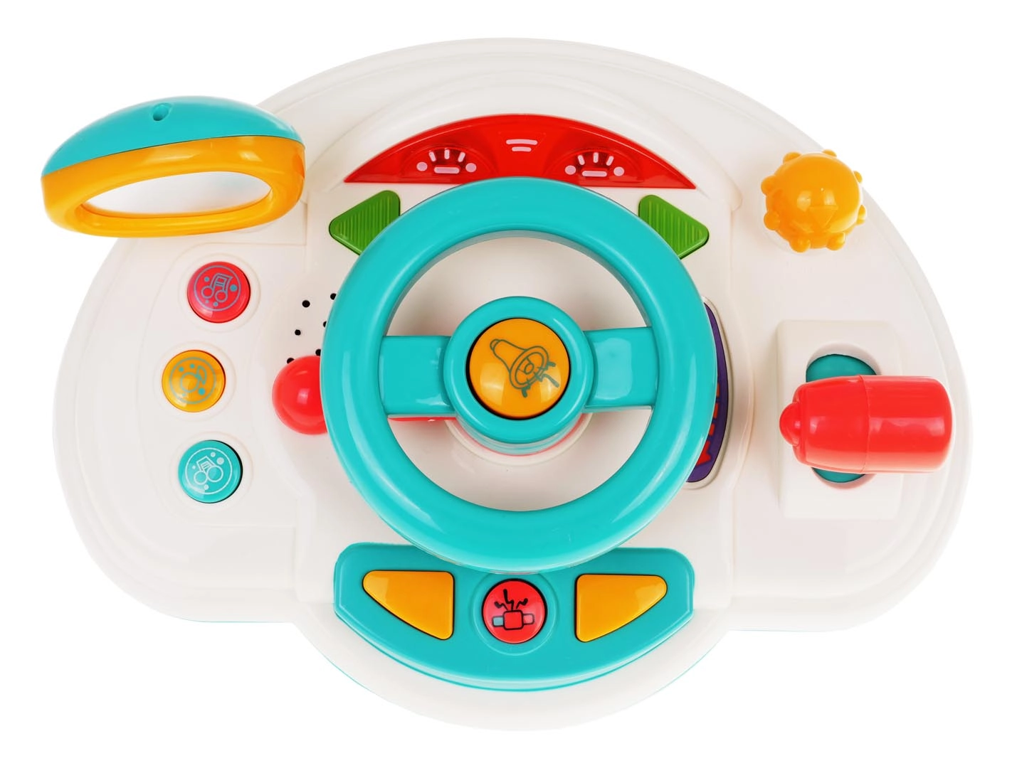 Ανακαλύψτε το χαρούμενο ταξίδι με το διαδραστικό παιδικό «ταμπλό», που μιμείται πραγματικό αυτοκίνητο. Τα παιδιά μπορούν να στρίβουν το τιμόνι, να χρησιμοποιούν την κόρνα, να ενεργοποιούν τους δείκτες κατεύθυνσης και να αλλάζουν «ταχύτητες» με τον λεβιέ. Τα φωτιζόμενα στοιχεία και οι μελωδίες κρατούν την προσοχή και υποστηρίζουν την αισθητηριακή ανάπτυξη.