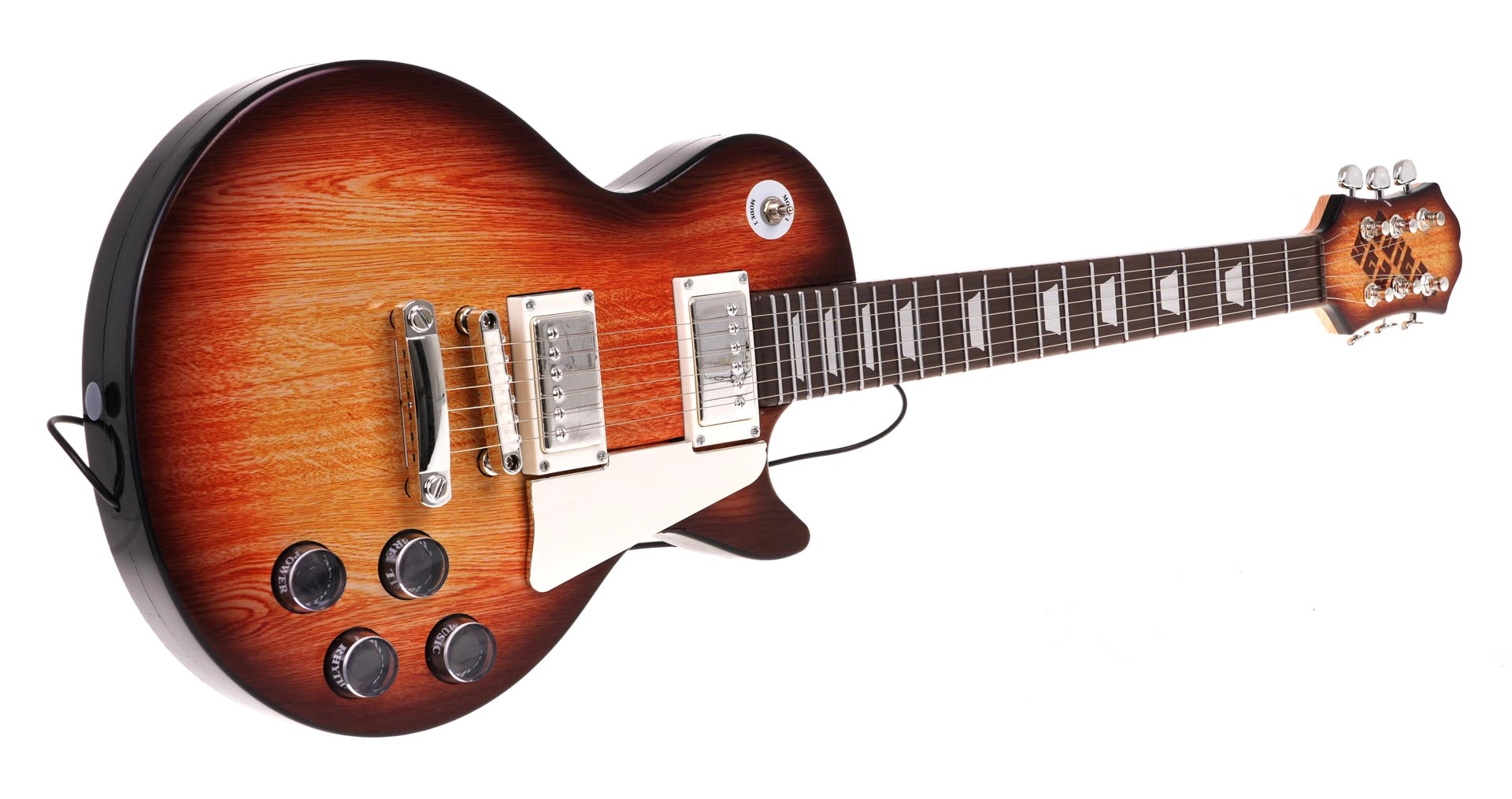 Η κιθάρα σε καφέ στυλ «sunburst» με χειριστήρια και λουράκι ενθαρρύνει τα παιδιά να ασχοληθούν με τη μουσική. Οι προρυθμισμένοι ρυθμοί και μελωδίες βοηθούν στα πρώτα βήματα.