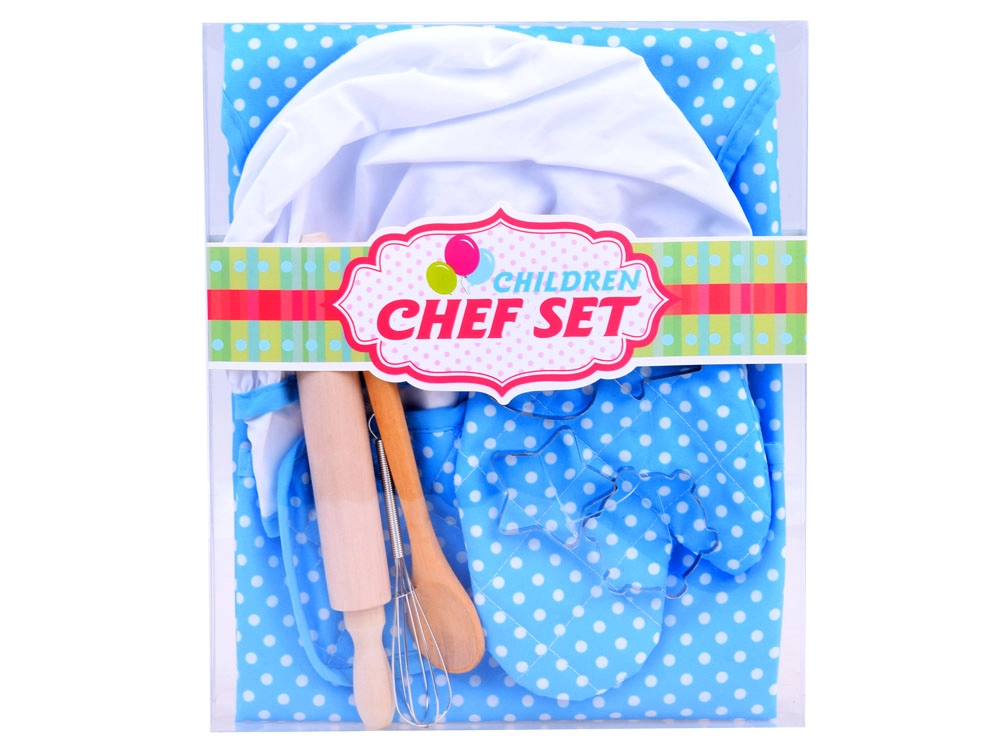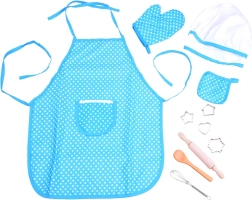 Αυτό το παιδικό σετ μαγειρικής είναι ιδανικό για παιδιά που τους αρέσει να βοηθούν στην κουζίνα. Η ποδιά με τσεπάκι, ο σκούφος με λάστιχο και το θερμικό γάντι προστατεύουν τα ρούχα και τα χέρια, ενώ ο ξύλινος πλάστης, η κουτάλα, ο αυγοδάρτης και τα μεταλλικά κουπ πατ κάνουν την προετοιμασία ζύμης και μπισκότων διασκεδαστική. Η κομψή συσκευασία το καθιστά ένα υπέροχο δώρο για μικρό μάγειρα.