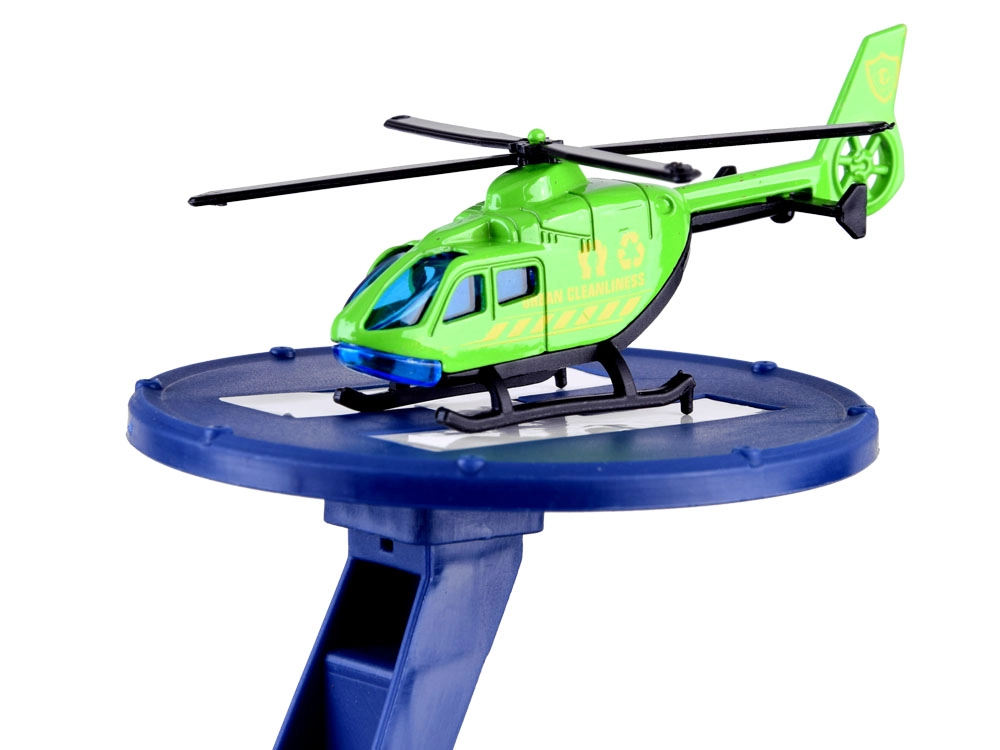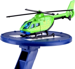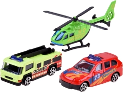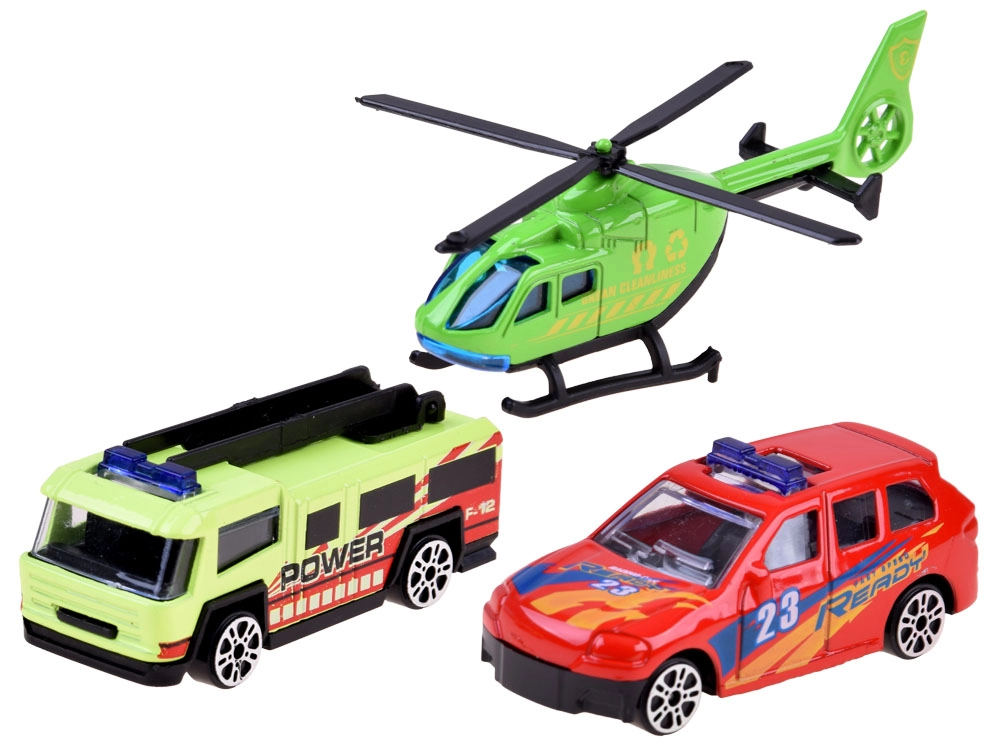 - Πλήρες σετ: 2 μεταλλικά αυτοκινητάκια, ελικόπτερο, 7 πινακίδες κυκλοφορίας, αυτοκόλλητα, υπόστρωμα πόλης.
