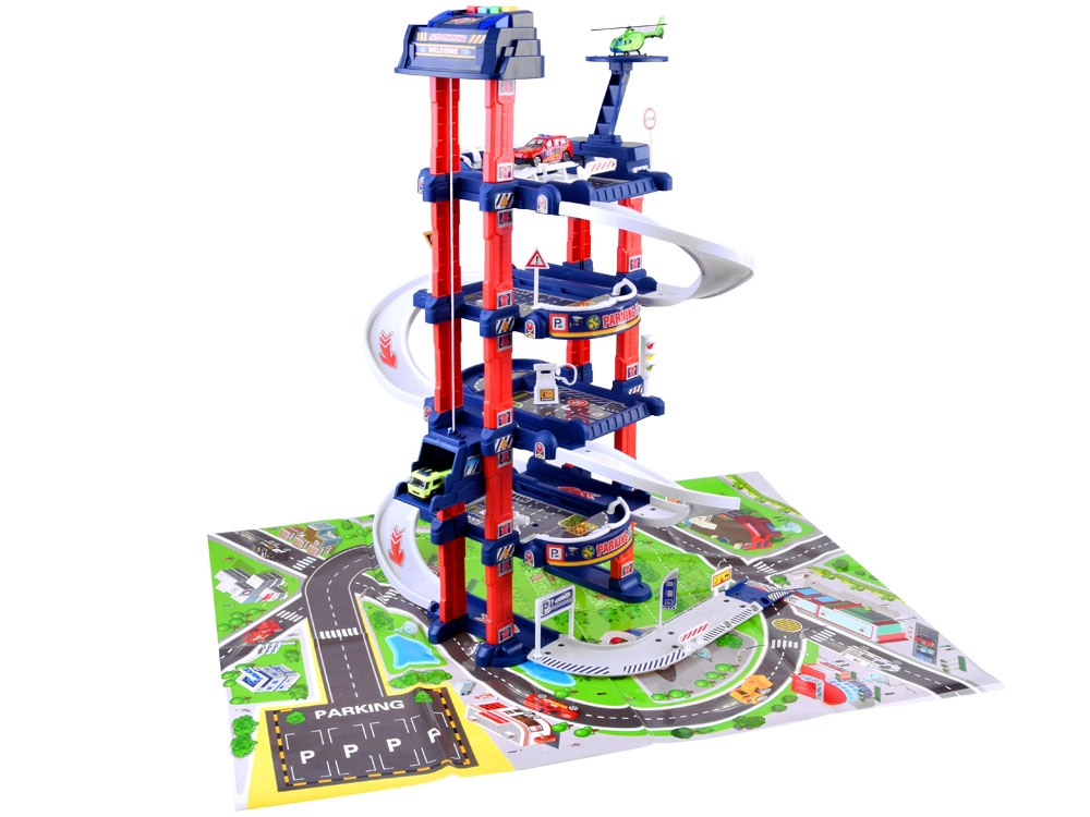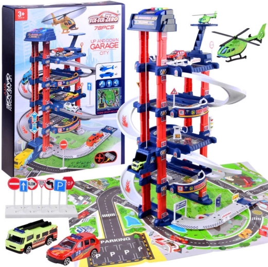 Ανακαλύψτε τον διασκεδαστικό κόσμο των αστικών μετακινήσεων με αυτό το πολυεπίπεδο σετ στάθμευσης με 4 επίπεδα, ηλεκτρικό ασανσέρ και φωτεινά και ηχητικά εφέ. Περιλαμβάνει υπόστρωμα με σχέδιο πόλης, 2 μεταλλικά αυτοκινητάκια, ελικόπτερο και πινακίδες κυκλοφορίας, βοηθώντας τα παιδιά να αναπτύξουν τη φαντασία και τη λεπτή κινητικότητα. Το παιχνίδι είναι κατάλληλο από 3 ετών και προσφέρει ρεαλιστική εμπειρία οδήγησης και παρκαρίσματος.