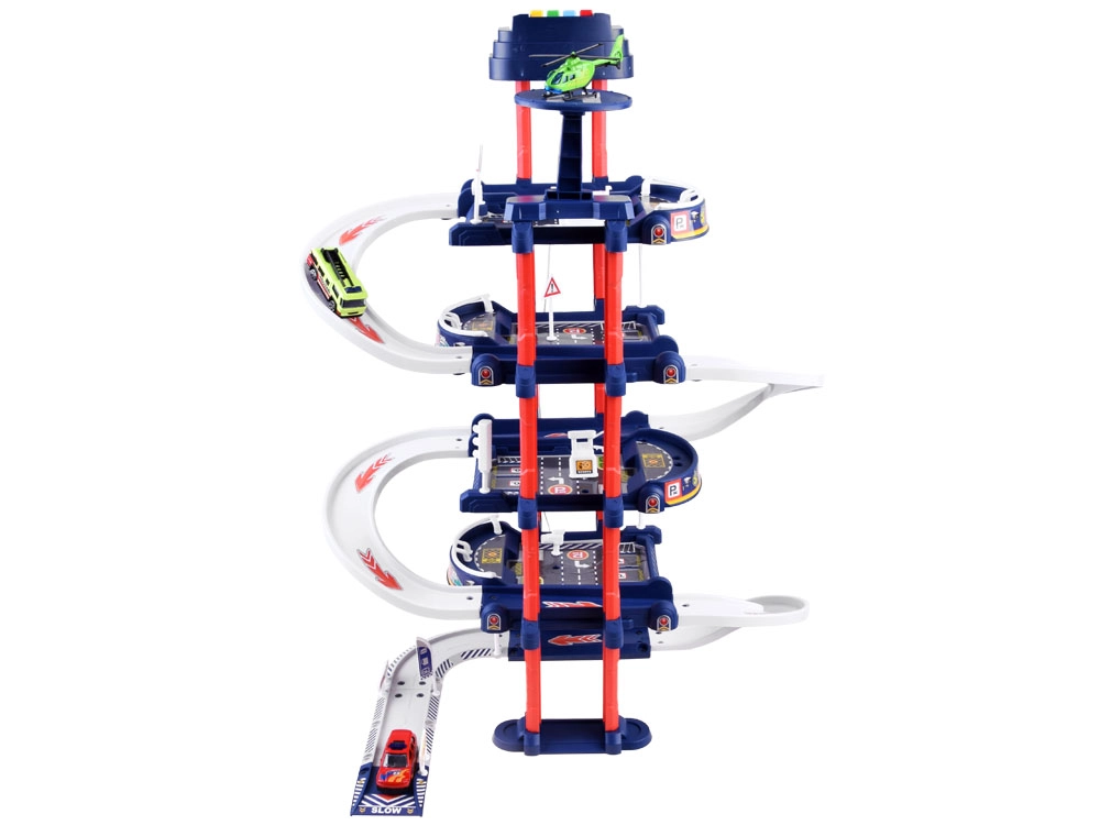 Αυτό το στιβαρό σετ γκαράζ προσφέρει στα παιδιά αυθεντική διασκέδαση – από την είσοδο στις σπειροειδείς ράμπες μέχρι τον αυτόματο μετασχηματισμό των αυτοκινήτων με το ηλεκτρικό ασανσέρ ανάμεσα στα επίπεδα. Την ατμόσφαιρα ενισχύουν τα φώτα και οι ήχοι (σειρήνες αστυνομίας, πυροσβεστικής και ασθενοφόρου, εκκίνηση κινητήρα, κόρνα), που απογειώνουν τη ρεαλιστική εμπειρία παιχνιδιού.