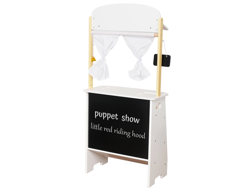 Οι κλεινόμενες πλευρές και οι κουρτίνες μεταμορφώνουν τον πάγκο σε κουκλοθέατρο. Τα παιδιά μπορούν να αφηγούνται ιστορίες, να ενισχύουν την αυτοπεποίθηση και να καλλιεργούν τη δημιουργικότητα.