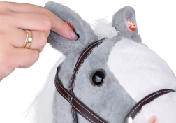 Κουμπιά τοποθετημένα στα αυτιά ενεργοποιούν ήχους χλιμιντρίσματος και καλπασμού, ενώ το αλογάκι ανοίγει και κλείνει το στόμα του, ενισχύοντας τον ρεαλισμό του παιχνιδιού.