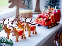 Συναρμολογήστε ένα λεπτομερές κόκκινο έλκηθρο με κομψές χρυσές πινελιές και ζέψτε τους τέσσερις τάρανδους με αποσπώμενες σέλες για μια αυθεντική χριστουγεννιάτικη εμπειρία.
