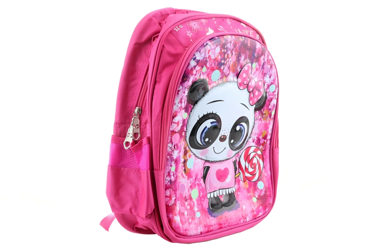 Χαρούμενο και πολύχρωμο παιδικό σακίδιο με σχέδιο μια χαριτωμένης πάντα, ιδανικό για τη μεταφορά βιβλίων και προσωπικών αντικειμένων. Προσφέρει ασφαλή και άνετη μεταφορά χάρη στην ενισχυμένη πλάτη.