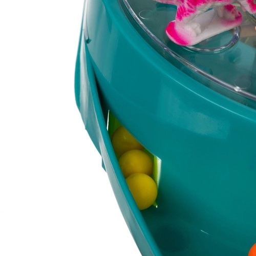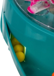Το διαφανές κάλυμμα αποτρέπει το πέταγμα των μπίλιων έξω από το παιχνίδι και προστατεύει τα παιδιά από τυχαία χτυπήματα. Τη σταθερότητα εξασφαλίζουν τα αντιολισθητικά πέλματα.