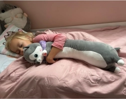 Ψάχνετε ένα πολυχρηστικό παιχνίδι που θα χαροποιήσει και θα υποστηρίξει ταυτόχρονα έναν ήρεμο ύπνο; Αυτό το μακρύ λούτρινο χάσκι προσφέρει σε παιδιά και γονείς ακριβώς ό,τι χρειάζονται: εξαιρετική απαλότητα, ζεστή, τρυφερή αγκαλιά και ασφαλή υλικά κατάλληλα ακόμη και για νεογέννητα. Είναι ιδανικό ως συντροφιά στην κούνια, άνετο μαξιλάρι στήριξης πλάτης ή στυλάτη διακόσμηση παιδικού δωματίου.