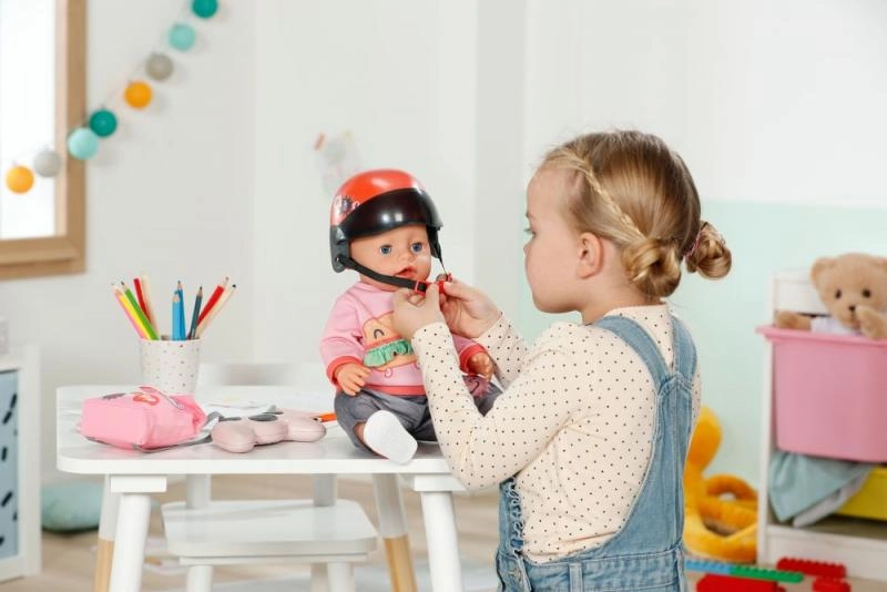 Το κράνος για σκούτερ για τις κούκλες BABY born είναι απαραίτητο αξεσουάρ για κάθε μικρή μοτοσικλετίστρια. Με αυτό το ασφαλές και μοδάτο κράνος μπορείτε να είστε σίγουροι ότι η κούκλα σας θα δείχνει απόλυτα στιλάτη και έτοιμη για κάθε περιπέτεια.