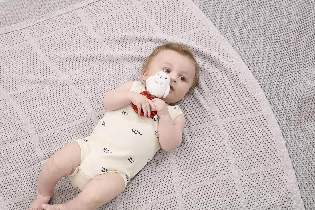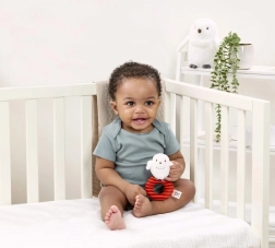 Ελαφριά και απαλή κουδουνίστρα, ιδανική για το σπίτι, το καρότσι και τις εκδρομές – πάντα πρόχειρη για ηρεμία και διασκέδαση.