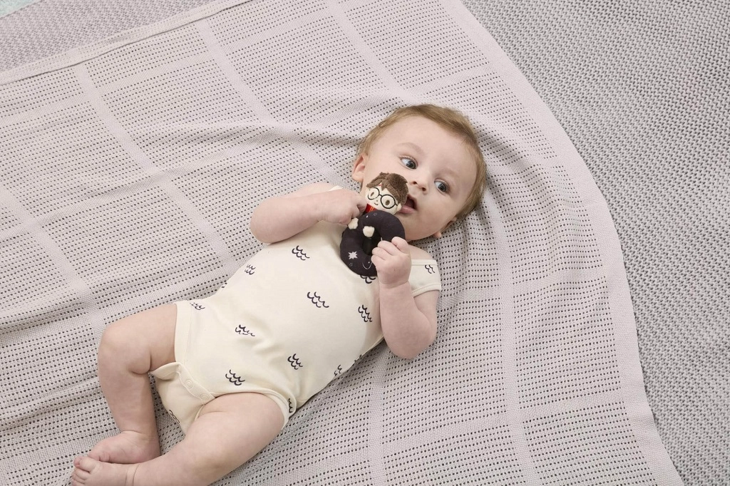 Το μεταξένιο υλικό είναι ευχάριστο στην αφή και κατάλληλο για νεογέννητα. Ιδανικό για αγκαλιές, κράτημα και τις πρώτες εξερευνήσεις.