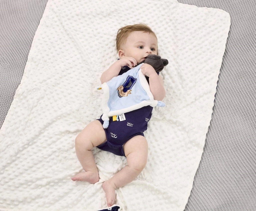Το υπερ-μαλακό υλικό, ευχάριστο για το παιδικό δέρμα, ηρεμεί και δημιουργεί αίσθημα ασφάλειας από τη γέννηση.