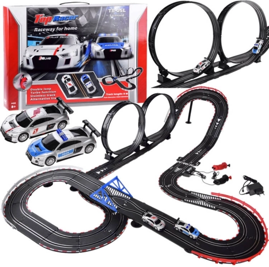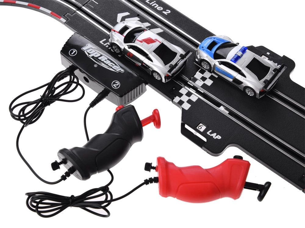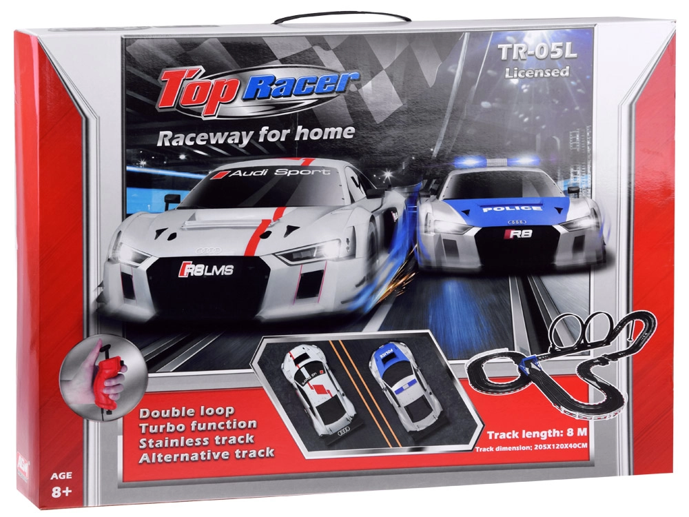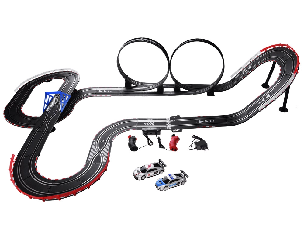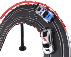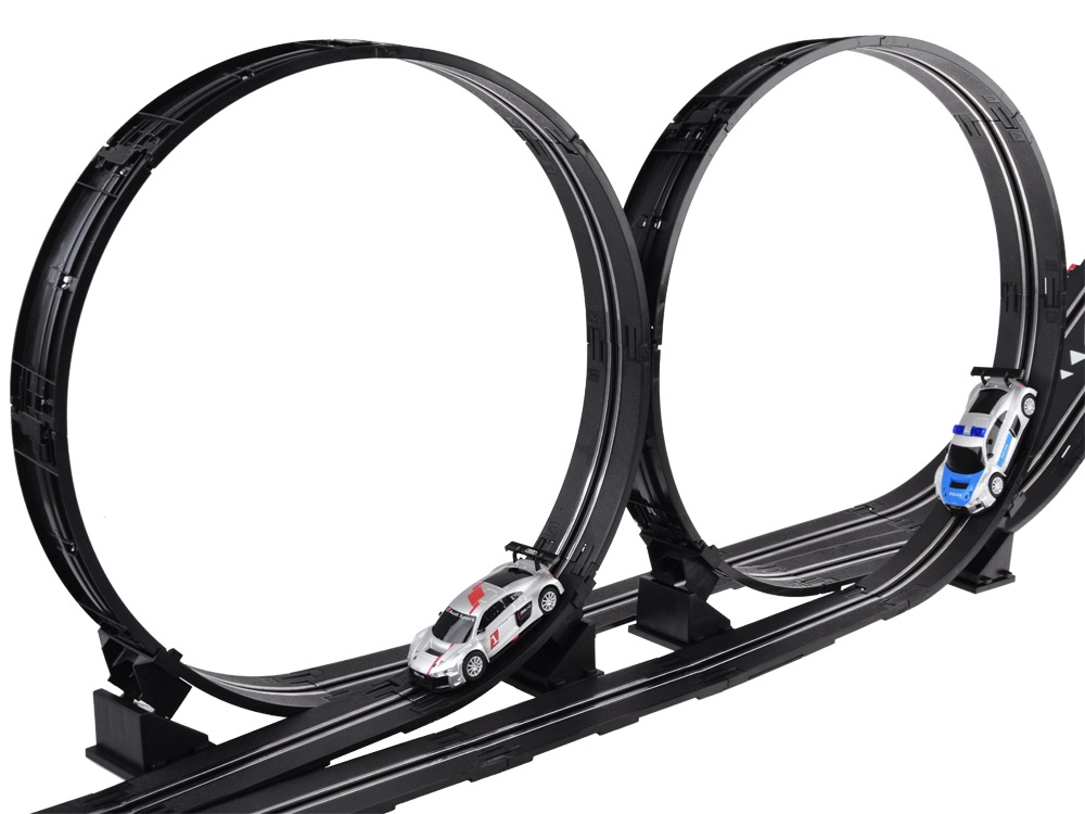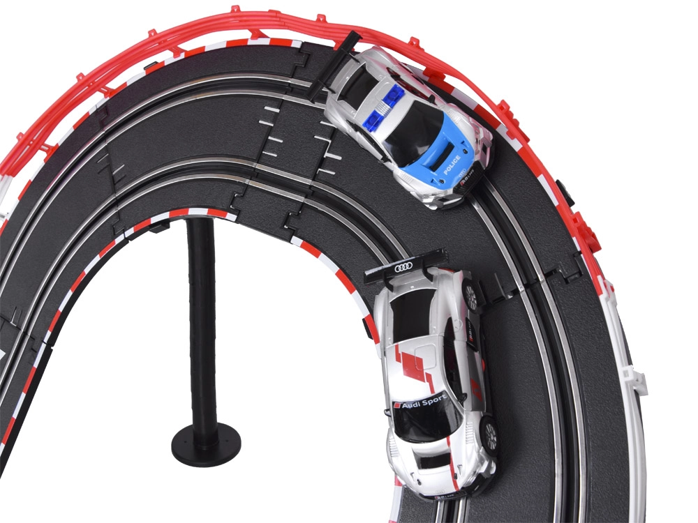 Στήστε τη δική σας διαδρομή με γέφυρες, looping και δυναμικές υψομετρικές αλλαγές. Χάρη στην τροφοδοσία από το δίκτυο και τα ακριβή χειριστήρια με λειτουργία «γκάζι», έχετε την ταχύτητα υπό έλεγχο κάθε στιγμή. Τα δύο λεπτομερώς κατασκευασμένα αγωνιστικά αυτοκίνητα AUDI κρατούν τη γραμμή και ανταπεξέρχονται και στα απαιτητικά στοιχεία της πίστας.