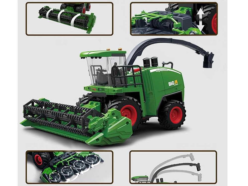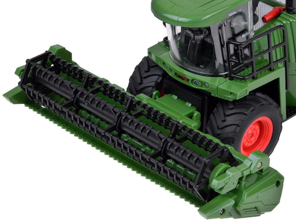 Αυτή η προσεγμένα σχεδιασμένη θεριζοαλωνιστική θα ενθουσιάσει όλους τους μικρούς λάτρεις της αγροτικής τεχνολογίας. Με την ενεργοποίηση ακούγονται ο ήχος εκκίνησης και το ρελαντί του κινητήρα, ενώ κατά την κίνηση προς τα εμπρός ο ήχος παραμένει ενεργός και ανάβουν τα πίσω φώτα και ο φάρος στην οροφή. Οι ρεαλιστικές αναλογίες και οι μελετημένες λεπτομέρειες καλλιεργούν τη φαντασία και το θεματικό παιχνίδι.