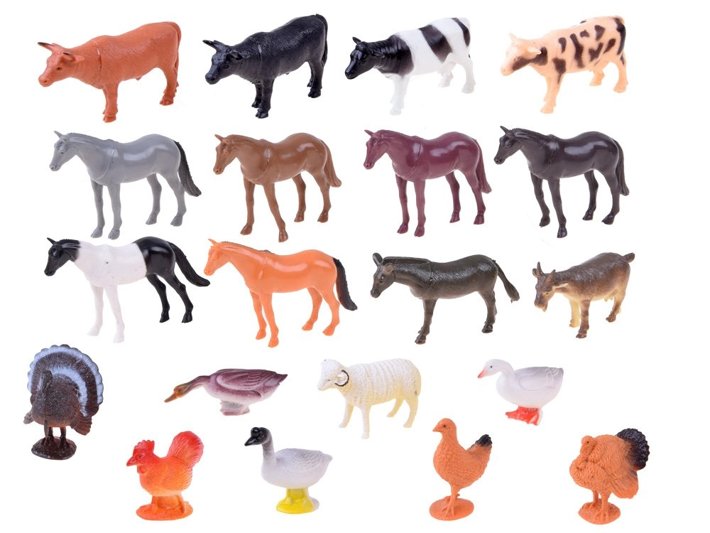 - Πλήρες σετ: άλογα, αγελάδες, γουρούνια, γαϊδούρια, πουλερικά και άλλα αγαπημένα αγροτικά ζώα.