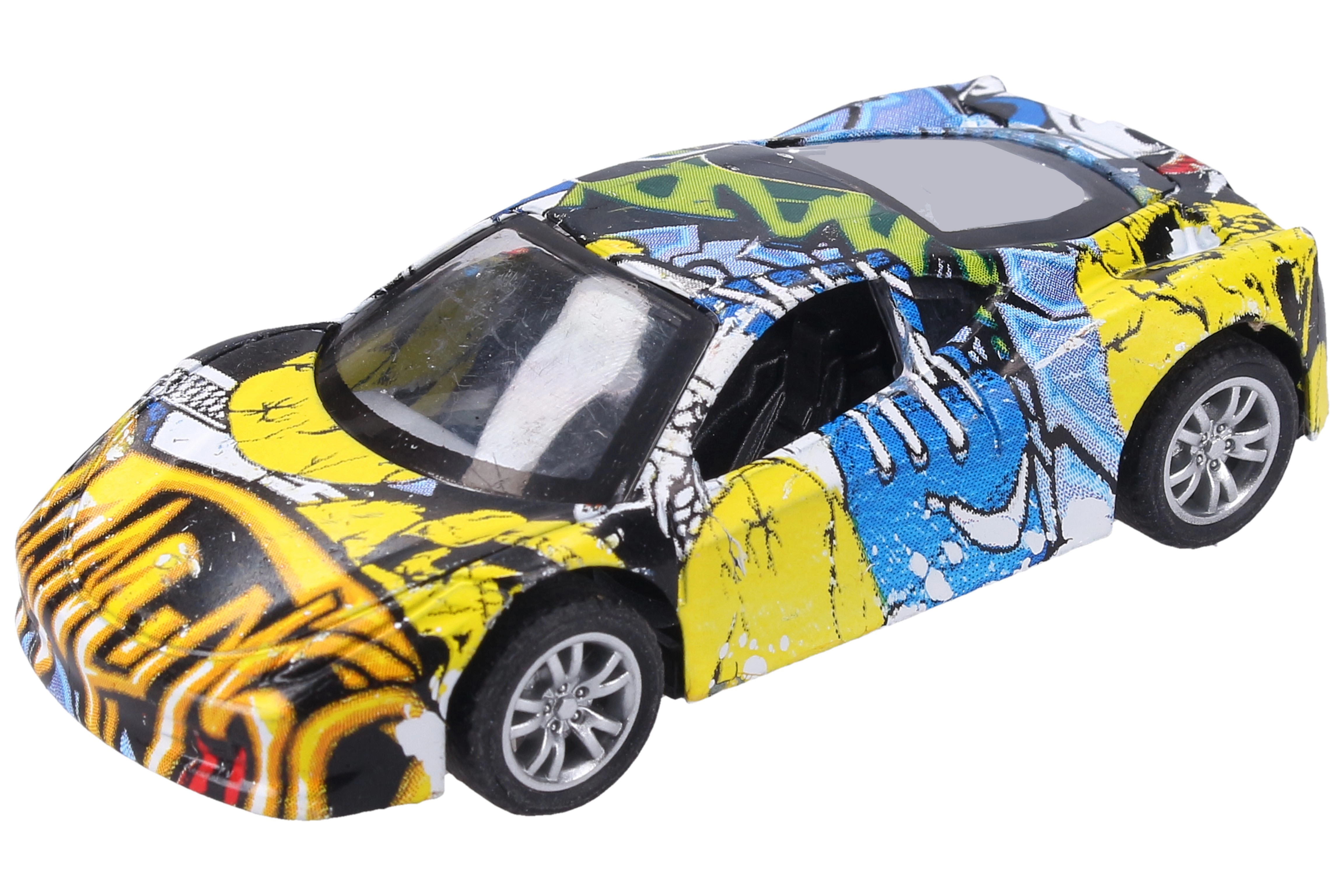 Ανακαλύψτε τη διασκέδαση με ένα μεταλλικό αυτοκινητάκι με μοναδικό εκτύπωμα graffiti. Χάρη στην ποιοτική κατασκευή και τον πρακτικό μηχανισμό επαναφοράς, είναι ιδανικό για αγώνες στο σπίτι αλλά και ως στιλάτο κομμάτι συλλογής.