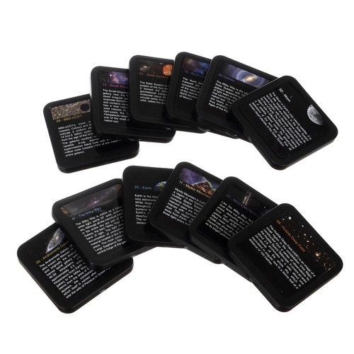 - 13 εναλλάξιμοι κινηματογραφικοί δίσκοι (3D Moon, North America Nebula, Small Magellanic Cloud, Galaxy, MN60-UCD1, Solar System, Mystic Mountain, NGC4302-NGC4298, Hubble Deep Field, Earth, The Milky Way, Andromeda Galaxy)