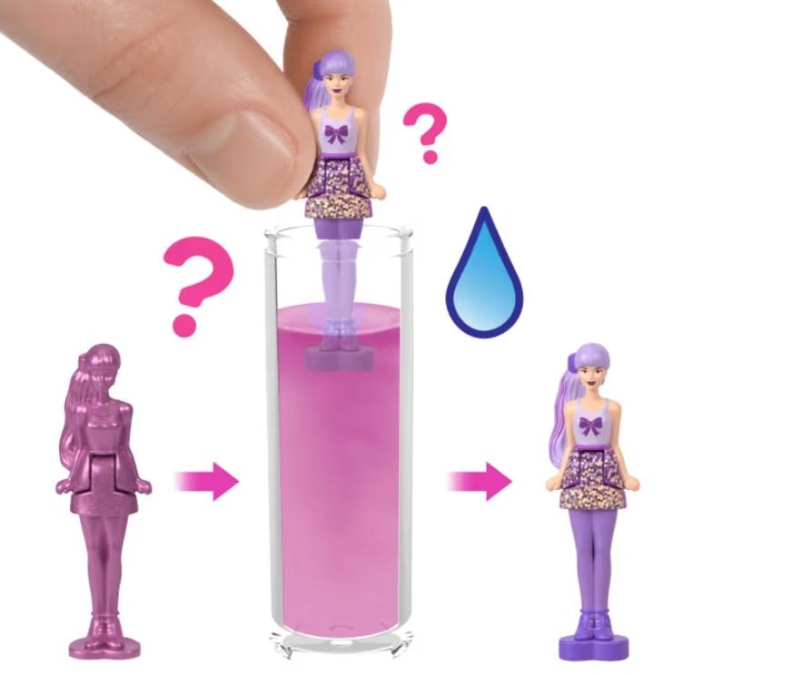 Βυθιστείτε στον κόσμο της Barbie με τις μίνι κούκλες Mini BarbieLand Color Reveal. Αυτές οι μικρές κούκλες προσφέρουν μεγάλη διασκέδαση και μικρές εκπλήξεις. Ανοίξτε το μικρό σωληνάριο, ανακαλύψτε τη μίνι κούκλα καλυμμένη με έγχρωμο στρώμα και με τη βοήθεια νερού αποκαλύψτε την εμφάνισή της!
