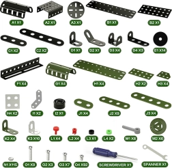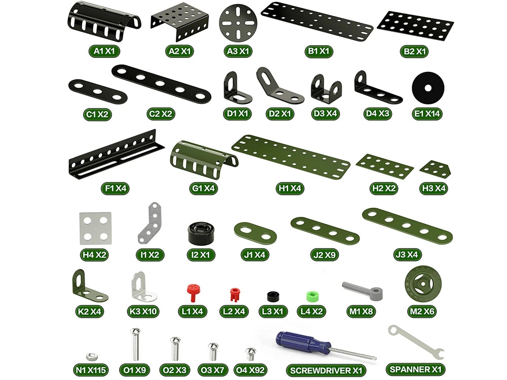 Στη συσκευασία θα βρείτε όλα όσα χρειάζεστε για τη συναρμολόγηση, συμπεριλαμβανομένων μεταλλικών και πλαστικών κομματιών, εργαλείων και αυτοκόλλητων.